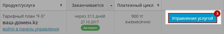 3. Нажмите возле необходимой услуги хостинга кнопку «Управление услугой».