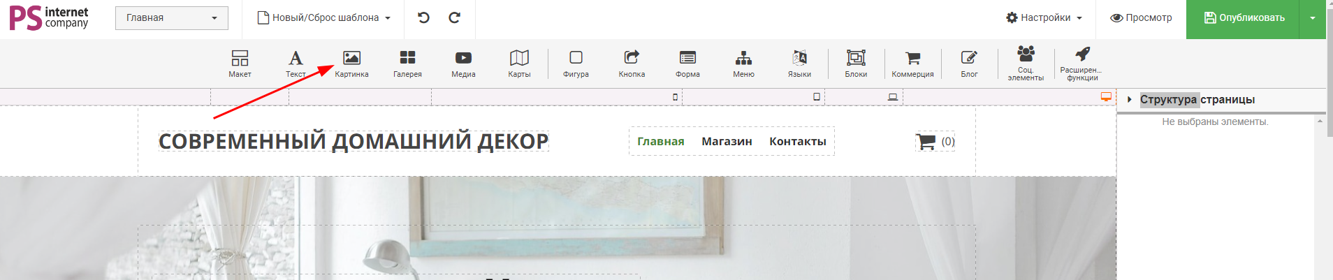1. Нажмите на плагин «Картинка» или перетащите в с главной панели инструментов: