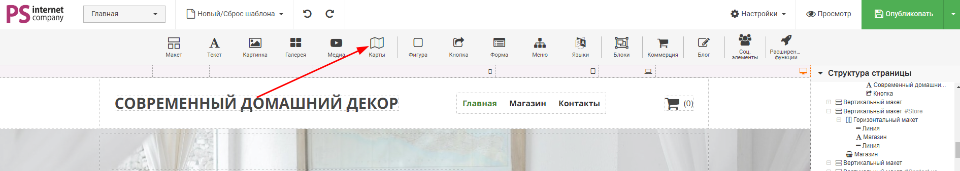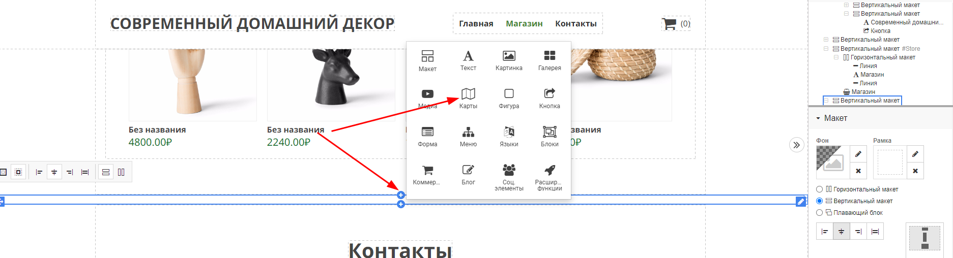1. Нажмите на плагин «Карты» или перетащите в область, где хотите его разместить: