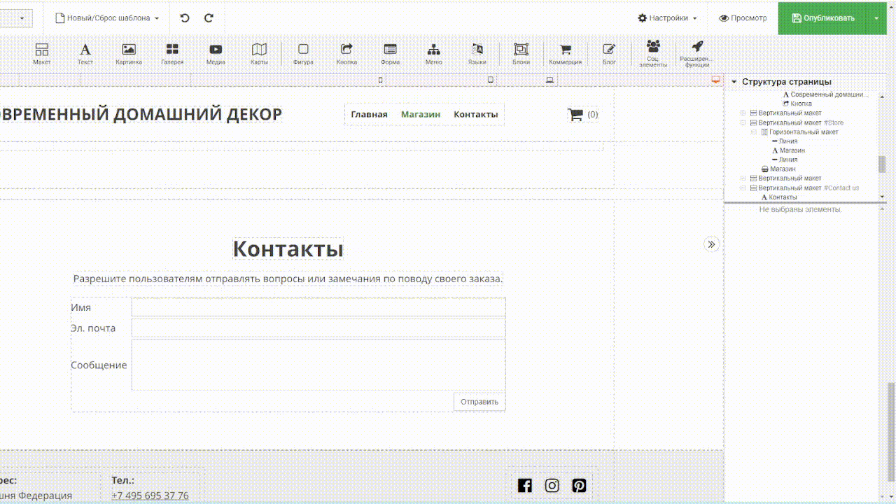 2. Или нажмите «+» на границе макета: