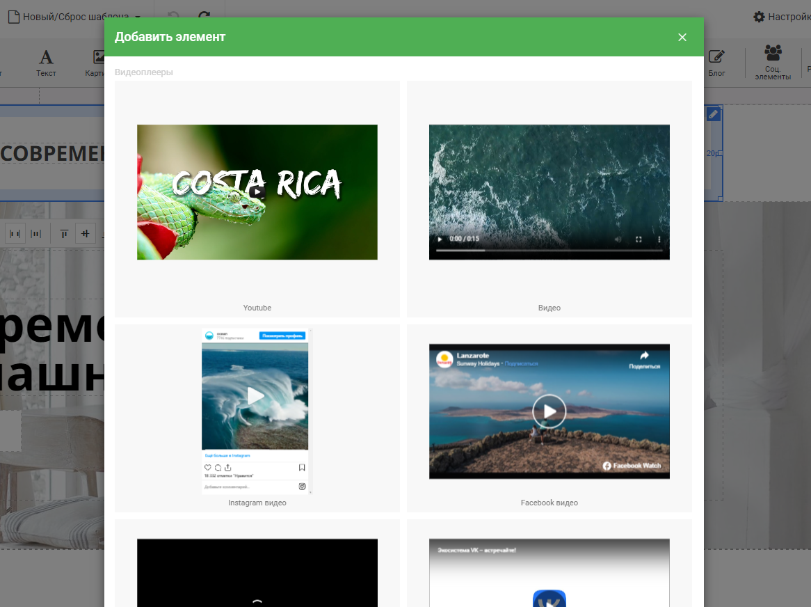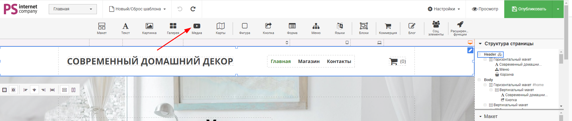 1. Нажмите на плагин «Медиа» или перетащите в область, где хотите его разместить: