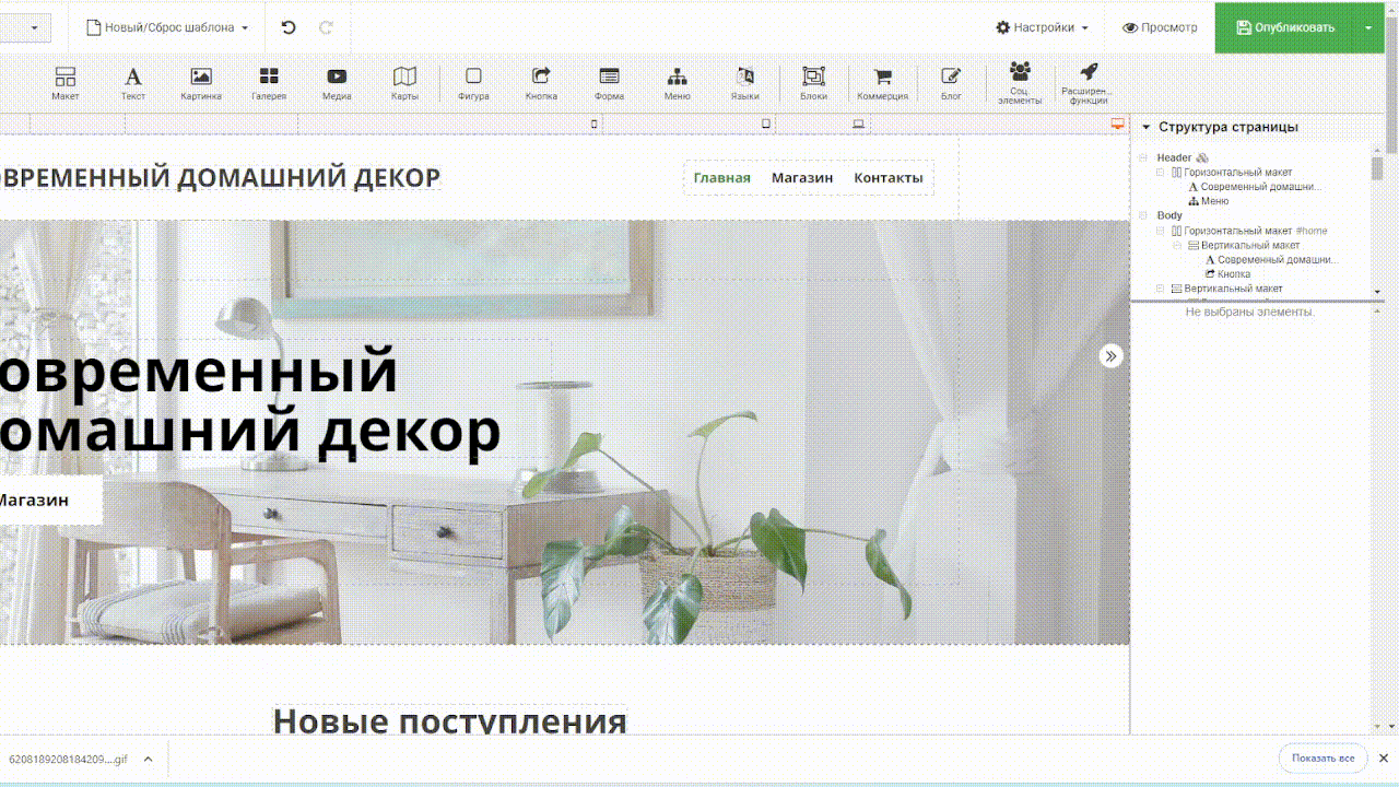 Для подключения платежной системы к сайту необходимо добавить плагин «Корзина» из меню Электронная коммерция в конструкторе.