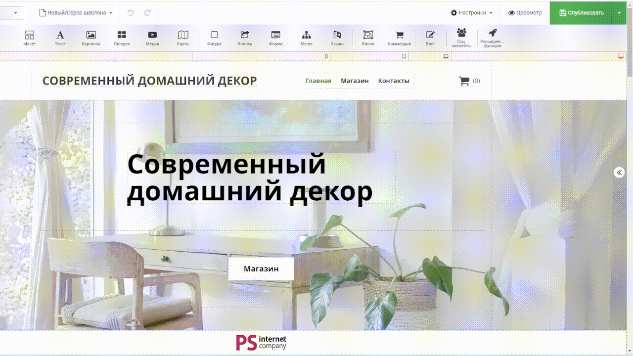 Нажмите «Опубликовать» веб-сайт в верхней части конструктора, чтобы сделать его общедоступным/