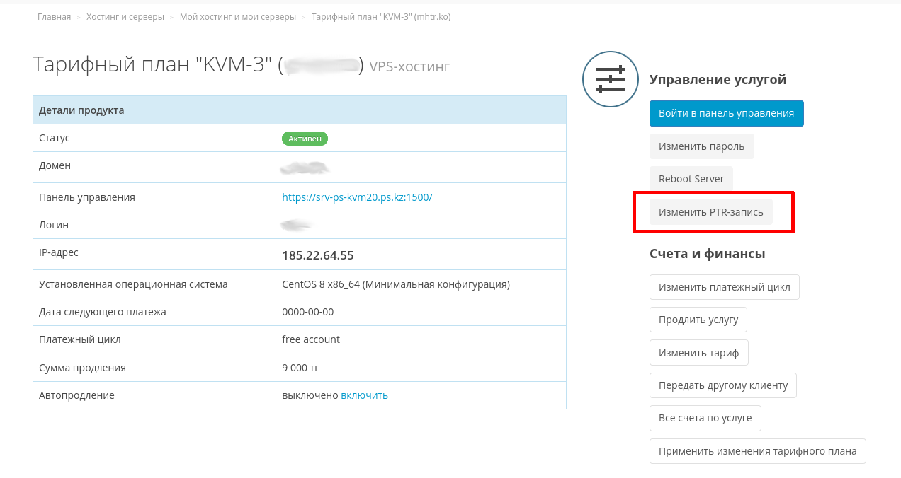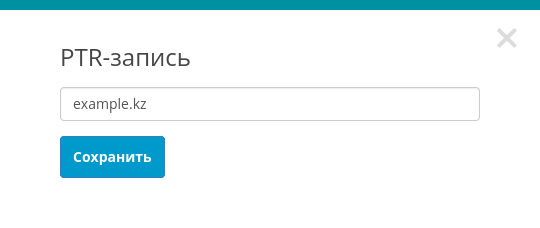 Если PTR-запись уже задана, присвоенное доменное имя будет отображаться в том же всплывающем окне.
